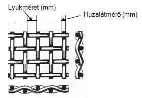 Például.: 1,00/0,45 ahol 1 mm a lyuknyílás mérete és 0,45 mm a huzal átmérője.