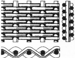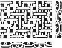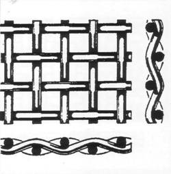 Ahol a lánc- és a vetülékirányú huzalok olyan szorosan vannak egymás mellé szőve, hogy felülnézetből nem látszik szabad felület. Az anyag a keresztezéseknél lévő kis helyeken tud csak átáramlani.